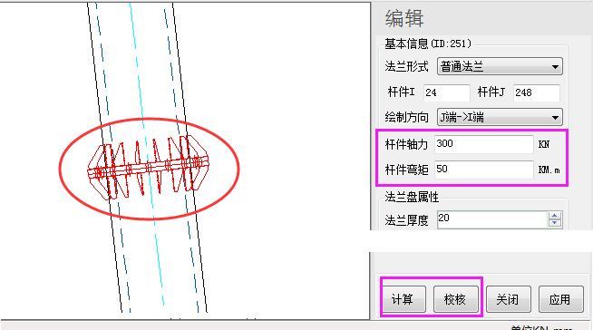 b) 修改中國規(guī)范“法蘭計算”章節(jié)中法蘭按照默認值計算的問題,改為法蘭計算參數(shù)根據(jù)施工圖中定義來計算