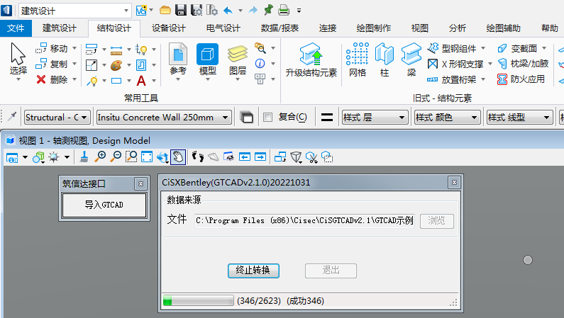 增加三維模型轉(zhuǎn)換接口模塊,可以將GTCAD建立的模型轉(zhuǎn)出到Bentley(ABD)模型(包含模型文件*.dat和截面庫文件*.xml),