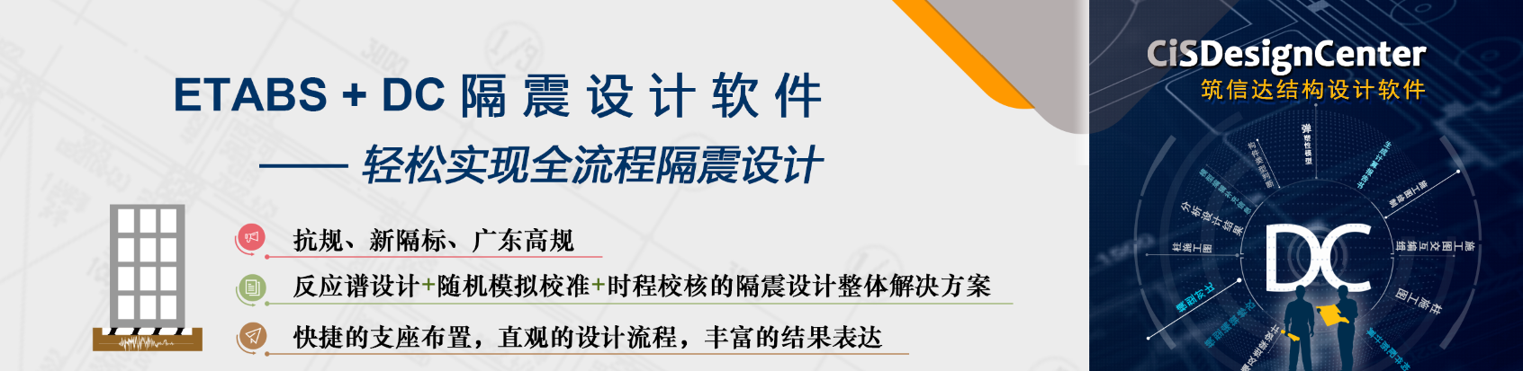 筑信達(dá)結(jié)構(gòu)設(shè)計(jì)軟件CiSDesignCenter(以下簡稱CiSDC)是北京筑信達(dá)工程咨詢有限公司開發(fā)的結(jié)構(gòu)輔助設(shè)計(jì)軟件。CiSDC軟件作為ETABS中文版和SAP2000中文版的前處理與后處理輔助設(shè)計(jì)軟件,主要功能可以劃分為以下幾個部分:作為數(shù)據(jù)中心完成不同軟件之間的模型轉(zhuǎn)換以及計(jì)算結(jié)果對比;讀取ETABS中文版/SAP2000中文版模型的分析結(jié)果完成構(gòu)件設(shè)計(jì)與施工圖繪制;依據(jù)施工圖一鍵生成彈塑性模型;輔助完成隔震、減震的全流程設(shè)計(jì)。