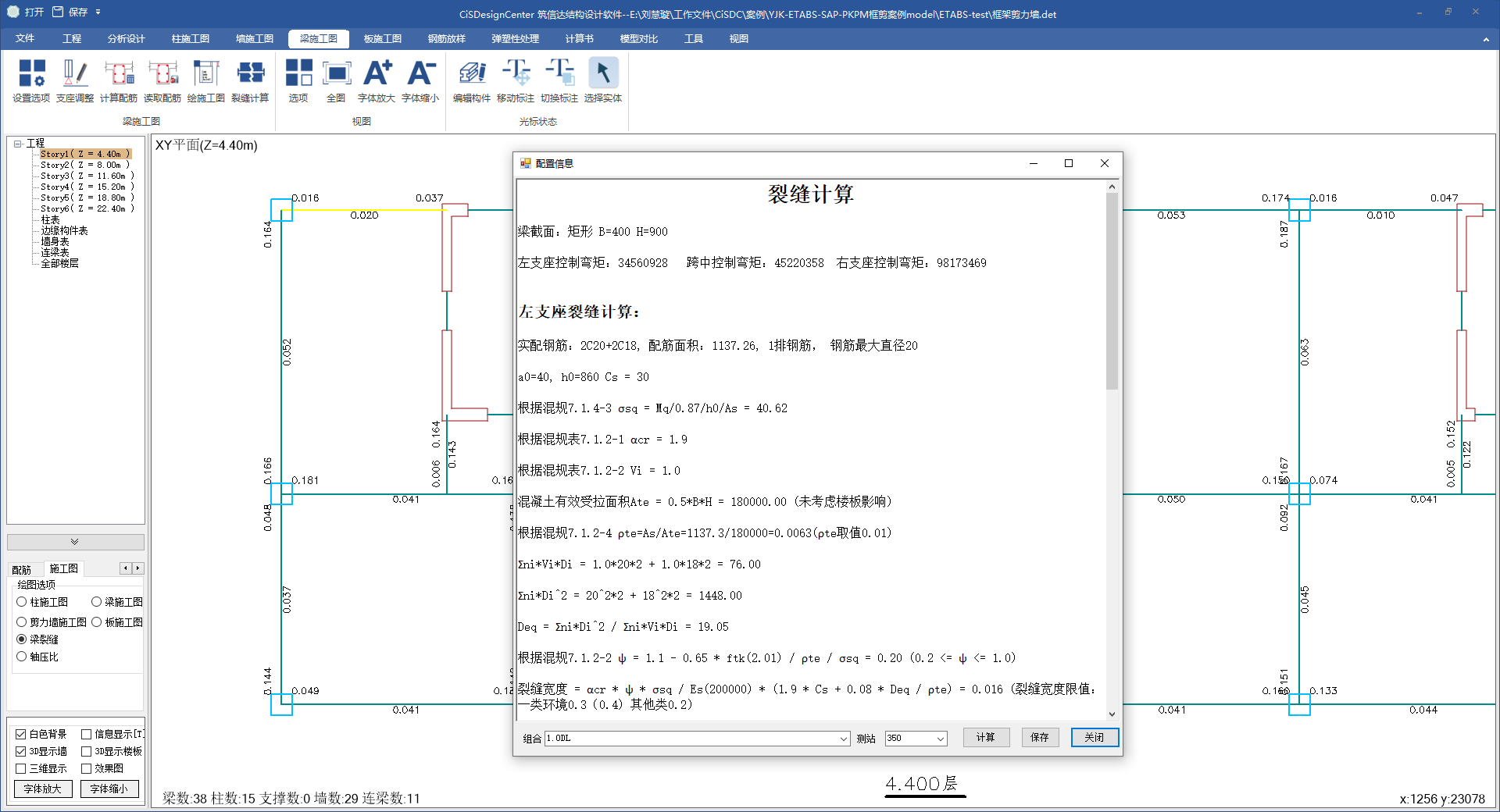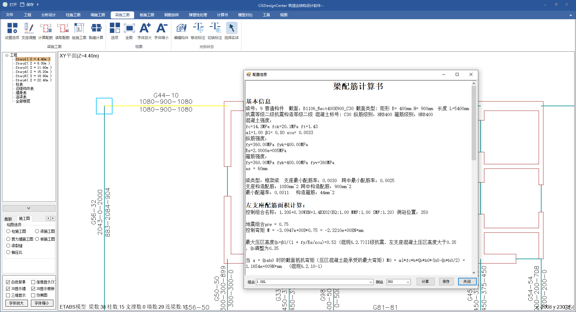 梁設(shè)計(jì)細(xì)節(jié)及配筋結(jié)果