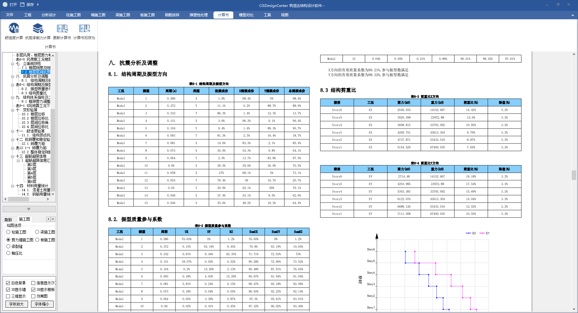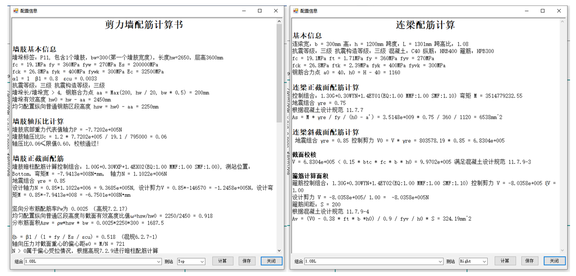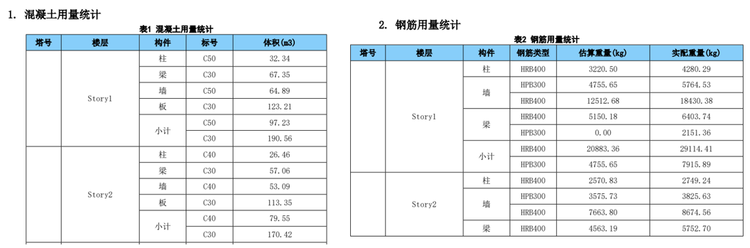 基于構(gòu)件配筋結(jié)果計(jì)算樓層抗剪承載力,并整理輸出計(jì)算書。計(jì)算書包含模型概況、荷載信息、結(jié)構(gòu)整體指標(biāo)、材料用量統(tǒng)計(jì)、超筋超限信息等。