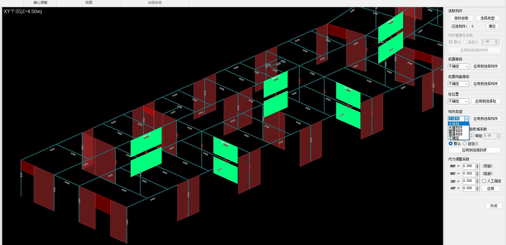 支持混凝土結(jié)構(gòu)和鋼結(jié)構(gòu)的彈塑性模型轉(zhuǎn)換,包括鋼筋混凝土梁/柱、鋼筋混凝土墻、型鋼混凝土梁/柱、鋼梁/柱、混凝土/鋼支撐等構(gòu)件。模型轉(zhuǎn)換過程中自動完成框架梁柱的合并、連梁的處理、材料本構(gòu)的修正等工作,依據(jù)CiSDC繪制的施工圖(即實(shí)配鋼筋)自動添加塑性鉸(普通梁M3鉸和支撐P鉸)、纖維鉸(普通柱/組合柱/組合梁PMM纖維鉸)、墻鉸(剪力墻PM3纖維鉸)。