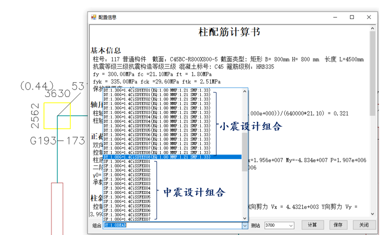 柱設(shè)計(jì)細(xì)節(jié)及配筋結(jié)果