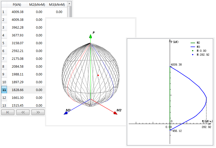 1. 采用獨(dú)創(chuàng)的符合鋼筋混凝土正截面承載力極限狀態(tài)基本理論的快速算法,利用纖維截面準(zhǔn)確高效地計(jì)算各種截面類(lèi)型、型鋼形狀、配筋形式的PMM相關(guān)面。