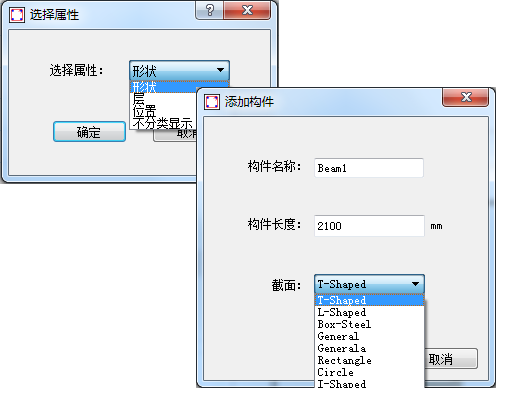為了方便構(gòu)件管理,用戶可根據(jù)形狀、位置、樓層等屬性對(duì)構(gòu)件進(jìn)行分類。通過調(diào)用已有的柱截面屬性,用戶可以快速完成構(gòu)件的定義。