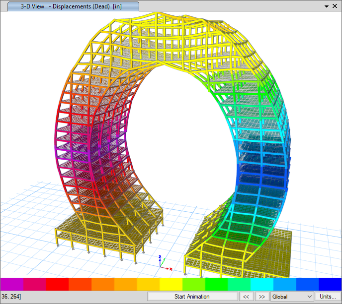 里茲向量模態(tài)考慮了動(dòng)力荷載的空間分布形式,這比使用相同數(shù)量的自振模態(tài)得到的結(jié)果更準(zhǔn)確。里茲向量模態(tài)不能像自振模態(tài)(特征向量法)那樣代表結(jié)構(gòu)的固有特征。