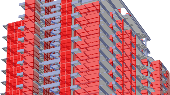 定制化的墻體布局模板幫助用戶輕松地定義墻截面屬性,鼠標單擊即可繪制多層墻體。當使用繪制墻垛命令繪制剪力墻時,程序自動指定所有的墻肢和連梁標簽。