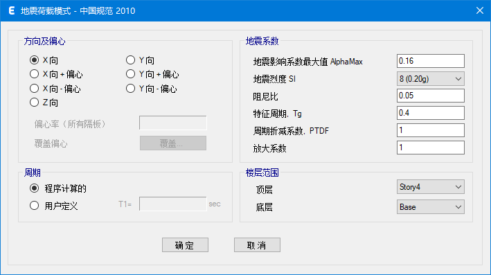 當(dāng)荷載模式類(lèi)型選擇地震荷載時(shí),程序提供了各種自動(dòng)側(cè)向荷載規(guī)范。選擇相應(yīng)的規(guī)范后,用戶可以查看或者修改地震荷載模式對(duì)話框中默認(rèn)的參數(shù)和選項(xiàng)。