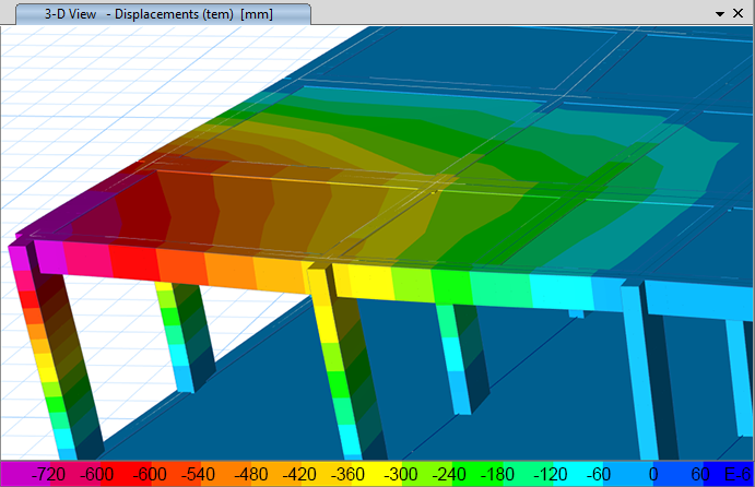 溫度荷載在框架單元中產(chǎn)生熱應(yīng)變。此應(yīng)變是材料熱膨脹系數(shù)和單元溫度變化的乘積。溫度荷載可以基于為對(duì)象指定的均勻溫差,也可以基于框架對(duì)象端點(diǎn)已指定的節(jié)點(diǎn)溫差,或者也可以基于二者的組合。