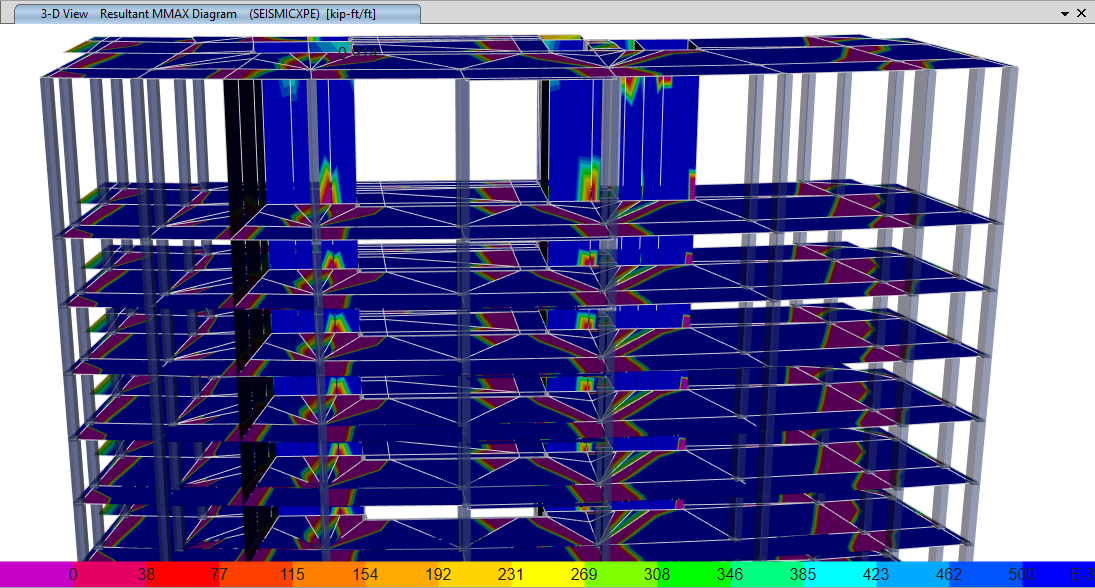 可以顯示任意荷載工況、荷載組合或模態(tài)工況下的殼內(nèi)力和應(yīng)力云圖。用戶可以選擇顯示任意方向任意分量的合成內(nèi)力和殼應(yīng)力。通過顯示未變形、變形后或拉伸后的形狀,以及是否顯示數(shù)值來控制應(yīng)力云圖的外觀。