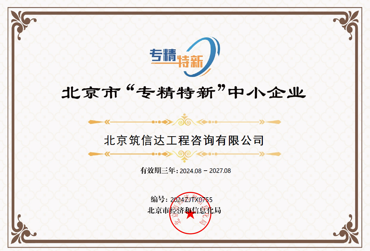 北京筑信達工程咨詢有限公司是ISO 9001認證企業(yè)、國家高新技術企業(yè)、北京市“專精特新“中小企業(yè)。
