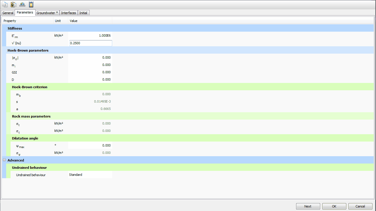 借助Hoek-Brown 材料模型的參數(shù)控制面板,用戶(hù)可以進(jìn)行交互式的參數(shù)取值,包括可