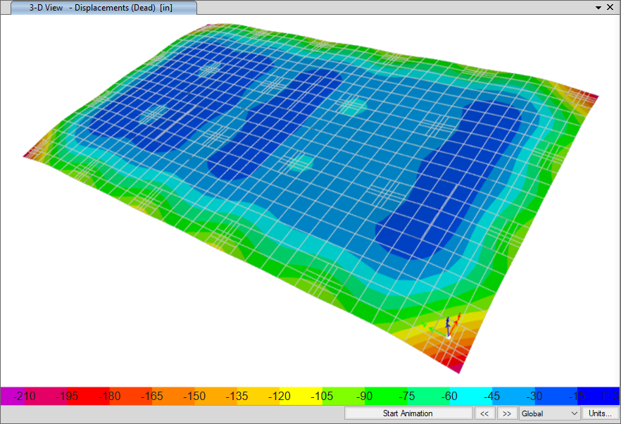 墻和坡道可以使用線荷載、線支座或者直接用墻單元來建模。定義剛域可以防止樓板在墻或坡道相交位置處的失真變形。