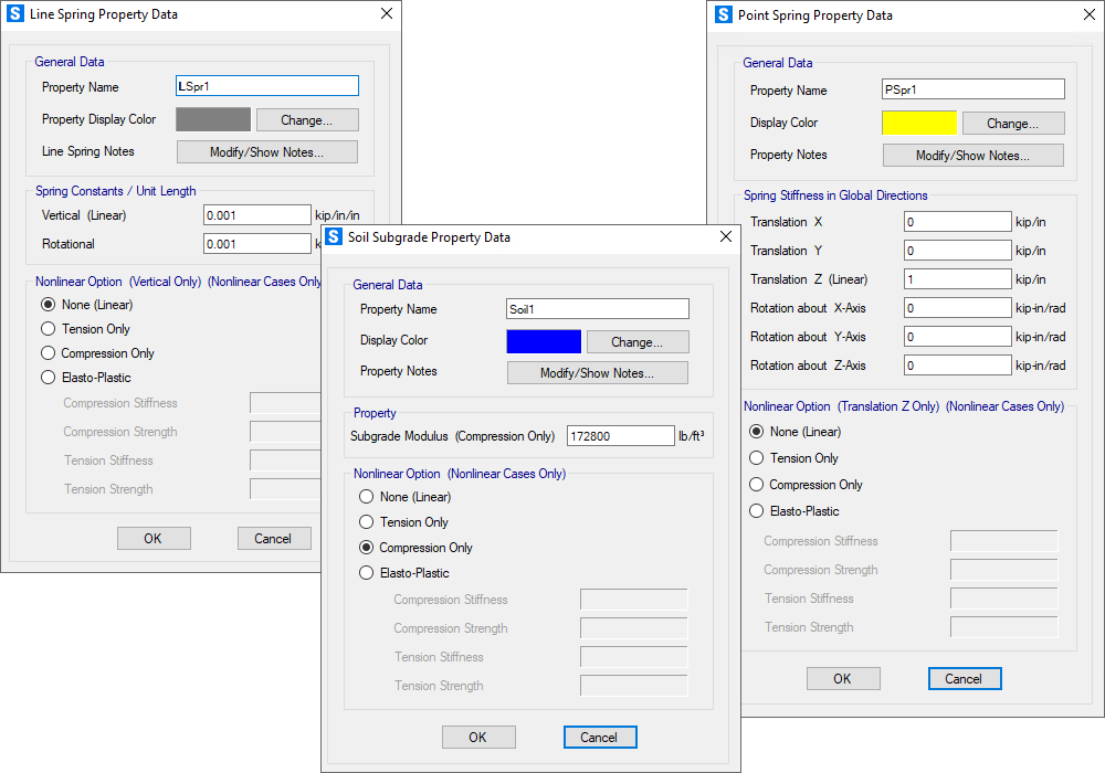 彈簧支座可以用來模擬地基土。彈簧支座可以定義為點(diǎn)、線或面彈簧,也可以定義為只拉或只壓。