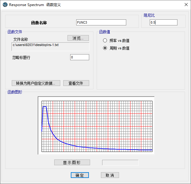 對(duì)于導(dǎo)入的反應(yīng)譜函數(shù)文件需要注意以下幾點(diǎn):