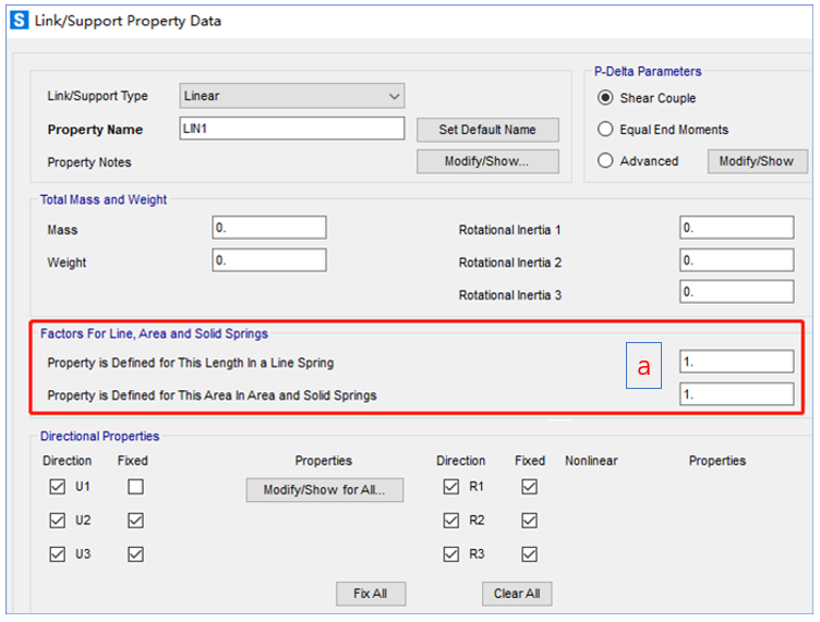 定義連接單元的屬性時(shí),Factors for line、Area and Solid Springs一欄會(huì)用在什么地方,以及該系數(shù)的具體含義是什么?