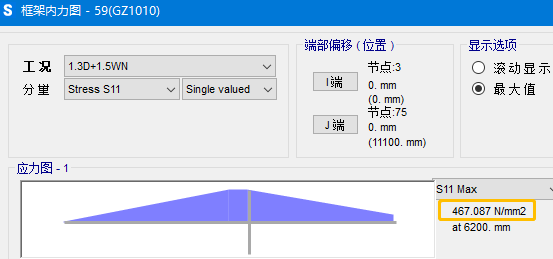 如下所示,采用異形 SD 截面的鋼構(gòu)件,材料為 Q235,強(qiáng)度設(shè)計(jì)顯示的應(yīng)力比滿足要求,為什么截面上最大正應(yīng)力 S11 為 467.087MPa,遠(yuǎn)超過了材料的強(qiáng)度設(shè)計(jì)值?