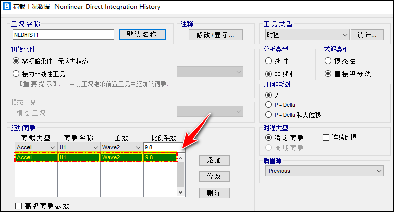在進(jìn)行時(shí)程分析時(shí),需要定義時(shí)程荷載,如下圖所示。在施加荷載選項(xiàng)卡中“比例系數(shù)”是的含義是什么,該如何填寫(xiě)的?