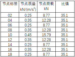 對比節(jié)點質(zhì)量與節(jié)點荷載,兩者比值為定值,可知程序是基于節(jié)點質(zhì)量分配地震力。
