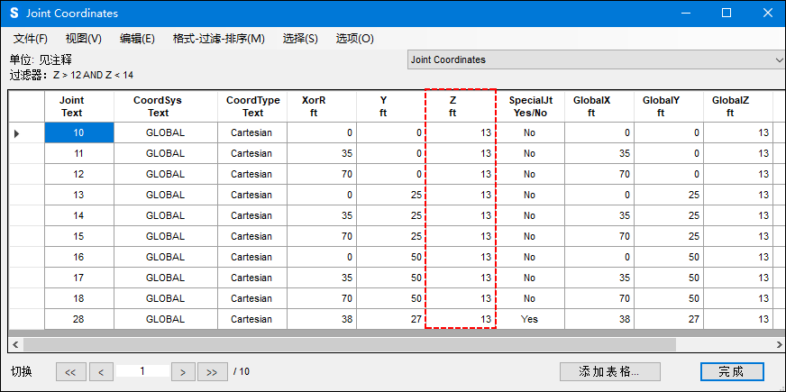 Connectivity Data > Joint Coordinates > Table: Joint Coordinates