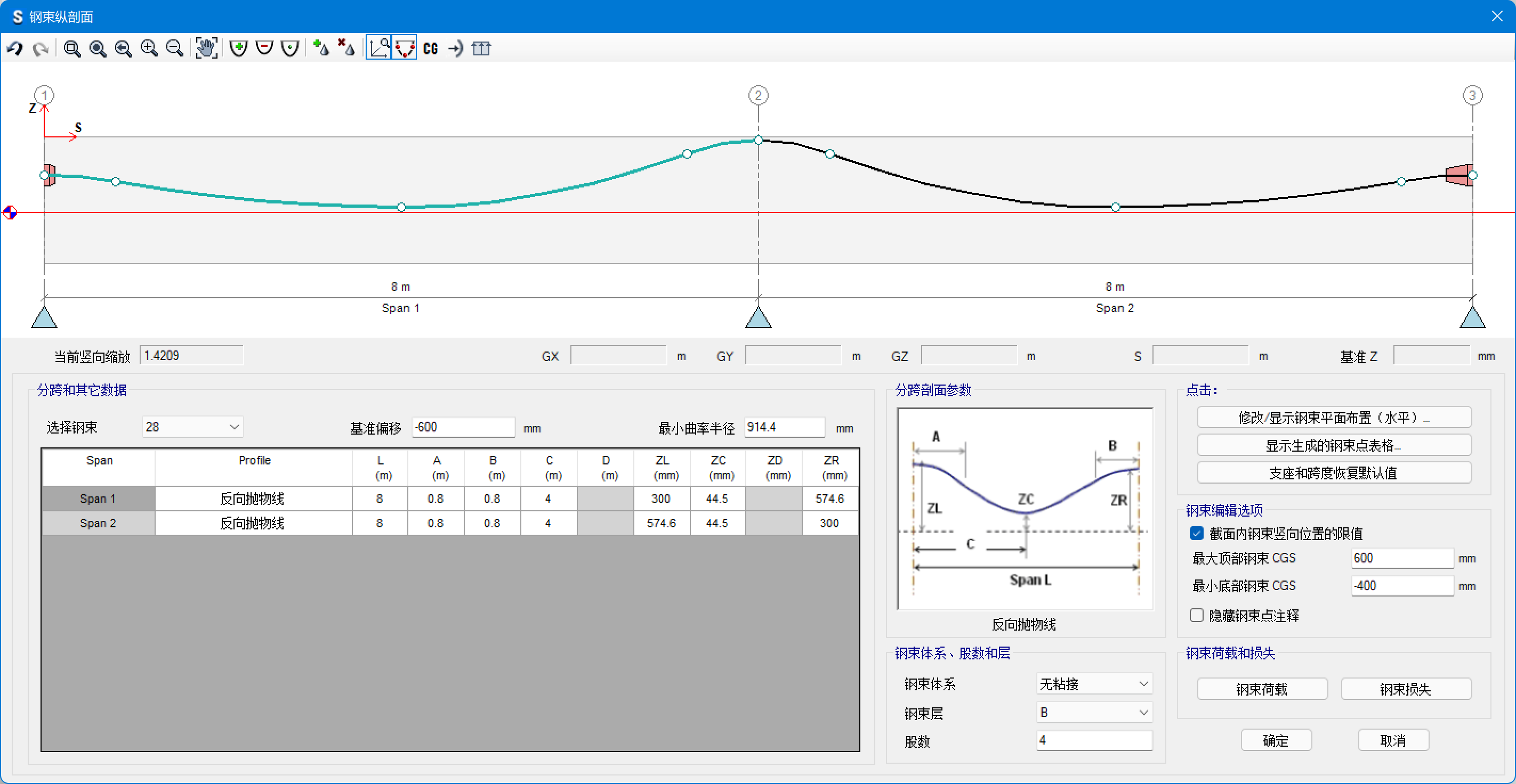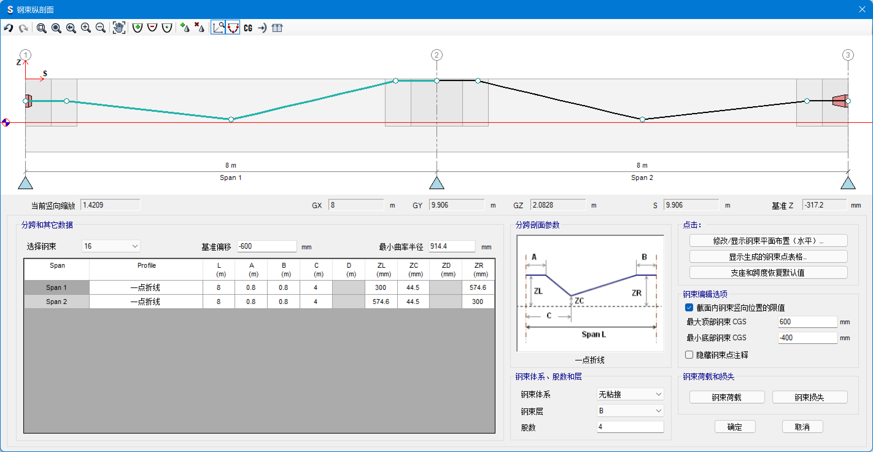 如下圖所示為問(wèn)題描述中的示例批量修改鋼束縱剖面后的結(jié)果。
