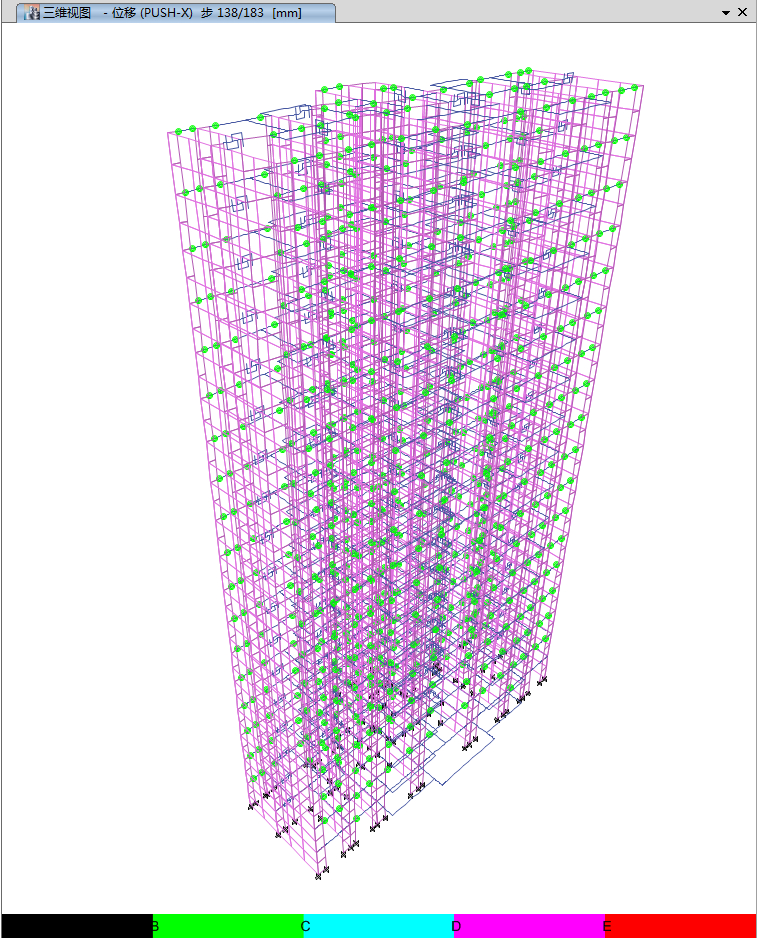 ETABS中可以基于可接受準(zhǔn)則判定構(gòu)件所處的性能狀態(tài)(相關(guān)內(nèi)容請參考“ETABS塑性鉸參數(shù)詳解”),但是無法判斷相同性能狀態(tài)下不同鉸的塑性程度。如下圖所示: