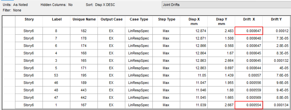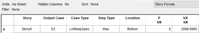 同理,可通過表格查看層剪力和層間位移,以Story6為例,如下: