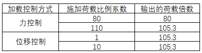 當采用力控制時,程序?qū)凑罩付ǖ摹氨壤禂?shù)”施加荷載,直至計算無法收斂。計算完成后,程序輸出的荷載倍數(shù)即實際施加在結(jié)構(gòu)上的荷載倍數(shù),無需與工況中的比例系數(shù)同時考慮。