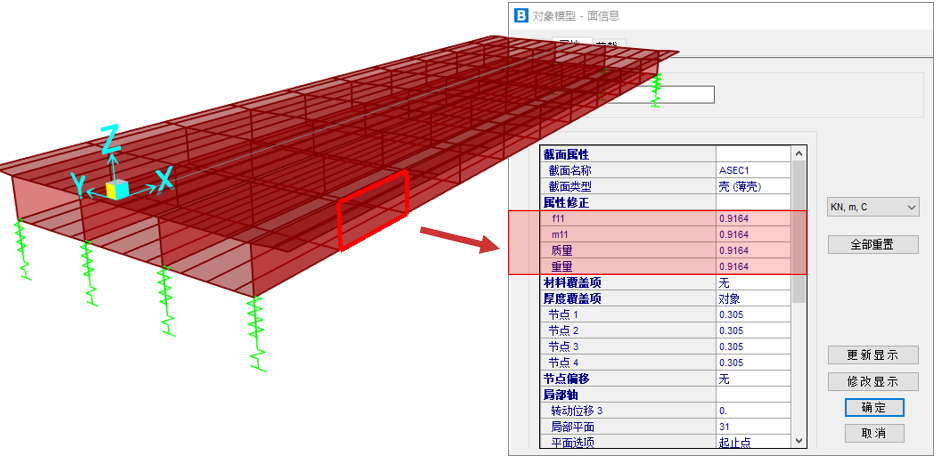 勾選該選項(xiàng)后,CSiBridge 自動(dòng)對(duì)主梁腹板、頂板、底板對(duì)應(yīng)的殼體指定同一個(gè)屬性修正系數(shù),調(diào)整其重量、質(zhì)量及剛度(僅修正