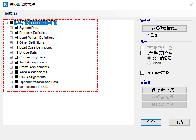 1. 在 CSiBridge 中點擊【文件>導出>文本】命令,將模型數(shù)據(jù)導出為 b2k 文本文件。注意,導出時需要勾選模型所有的“模型定義”信息。