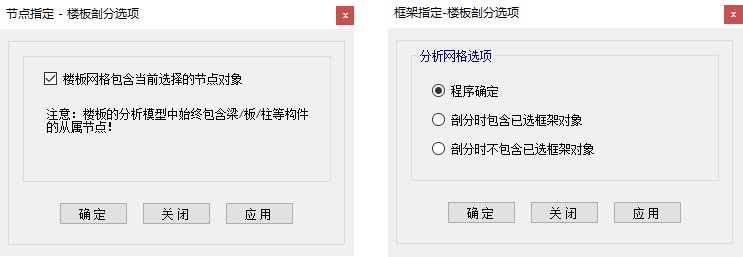 圖4 指定>節(jié)點(diǎn)>樓板剖分選項(xiàng) 圖5 指定>框架>樓板剖分選項(xiàng)