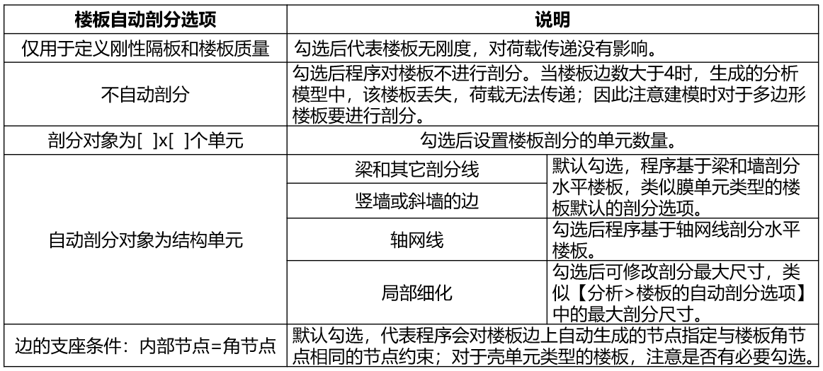 圖3 樓板自動(dòng)剖分選項(xiàng)說明
