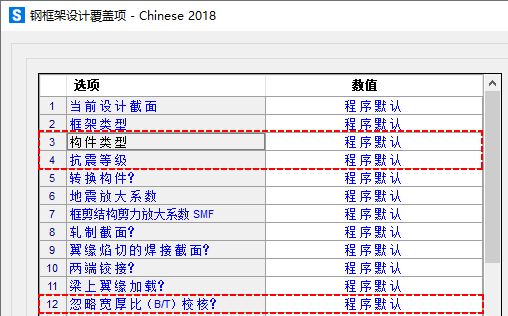 b/t?)、是否為支撐構(gòu)件(Brace Member?)、是否受壓(Compr Force?)、是否軸心受力(Axial Only?)、是否為抗震組合(Seismic Combo?)以及是否為非抗震構(gòu)件(SDG None?)。其中受力狀態(tài)和抗震/非抗震組合的判斷由程序自動完成,其余可通過設(shè)計覆蓋項手動調(diào)整,如圖3所示。