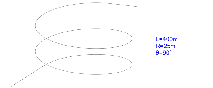 以下圖所示的圓形曲線為例,該曲線總長度為 400m,初始直線段為 30m,圓曲線半徑為 25m,初始方向角為 N900000E,終點方向轉角為 S000000E,現(xiàn)在在 CSiBridge 中定義該布局線: