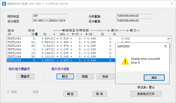 在SAP2000中完成構(gòu)件設(shè)計后,查看設(shè)計信息時,彈出如圖1所示的報錯,并且相應(yīng)的設(shè)計結(jié)果無法顯示,如圖2所示。請問這是什么原因?qū)е碌模?/span>