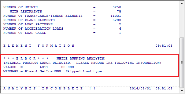load type”(即:荷載丟失)的錯誤信息且終止計算。