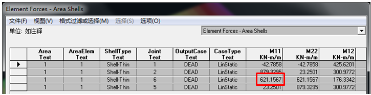號單元的 6 號節(jié)點在內(nèi)力云圖中顯示的結(jié)果為 625.18;但在數(shù)據(jù)表格中顯示的結(jié)果為 621.16。