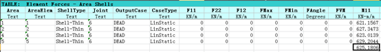 ,表格結(jié)果不輸出平均后的結(jié)果。如果我們的分析對面單元的應(yīng)力或內(nèi)力結(jié)果很關(guān)注,最好的辦法就是:細化網(wǎng)格后進行應(yīng)力平均化!