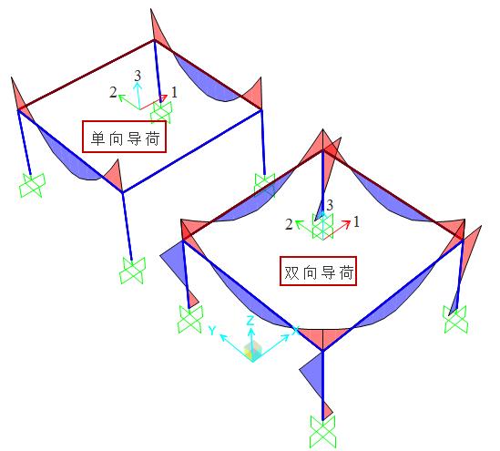 通常,對膜單元施加面荷載時采用導荷至框架的命令,膜單元只是作為施加荷載的媒介。