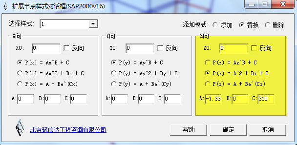 該程序提供多種節(jié)點(diǎn)樣式包括冪函數(shù)節(jié)點(diǎn)樣式、拋物線節(jié)點(diǎn)樣式以及指數(shù)函數(shù)節(jié)點(diǎn)樣式(適用于SAP2000 v15及v16版本),可幫助用戶快速定義上述三種常用類(lèi)型的非線性節(jié)點(diǎn)樣式。