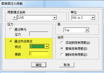 注意:荷載樣式僅應(yīng)用于面單元或框架單元,點(diǎn)荷載的空間分布并不能通過(guò)節(jié)點(diǎn)樣式來(lái)描述。