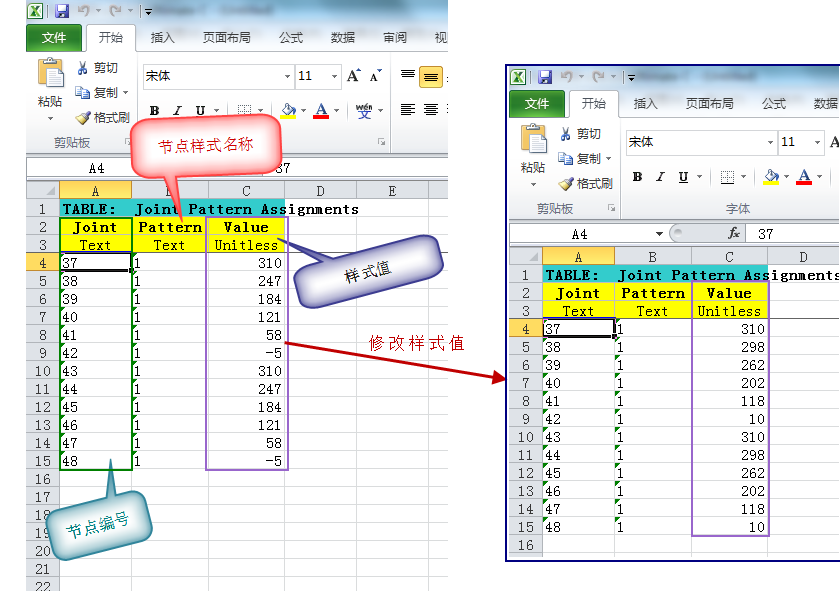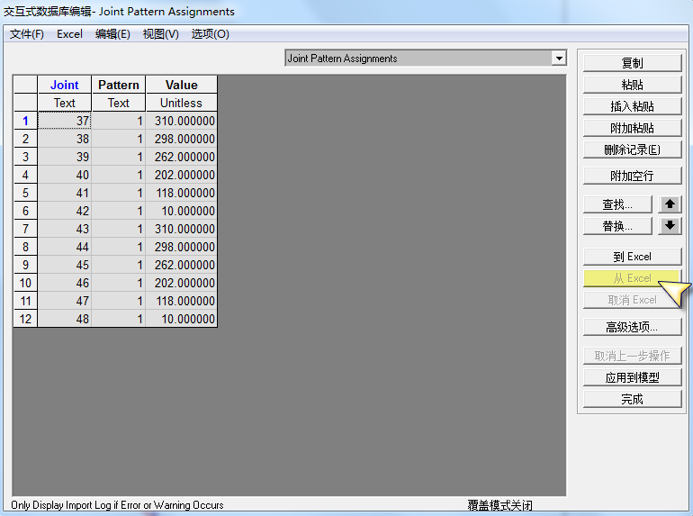 點(diǎn)擊“到Excle”,將表格中Value對(duì)應(yīng)的值修改為非線性函數(shù)的節(jié)點(diǎn)樣式值,如圖5所示。