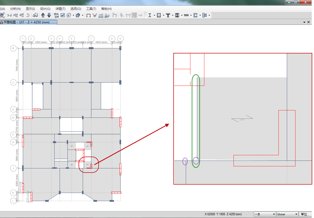 在模型中繪制電梯井附近的一道梁(綠框區(qū)域所示)和樓板,完成繪制后發(fā)現(xiàn)該梁和樓板左下角處始終無法和另一道主梁搭接上,如下圖所示。請問,這是什么原因造成的?