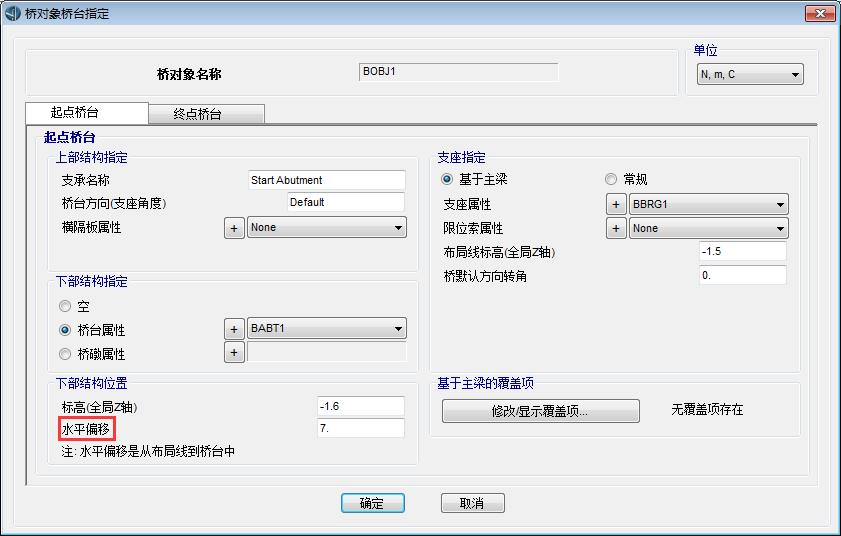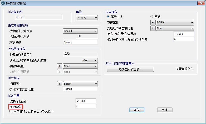 下部結(jié)構(gòu)偏移在橋梁>支承>橋墩>橋墩位置>水平偏移和橋梁>支承>橋臺(tái)>下部結(jié)構(gòu)位置>水平偏移中設(shè)置,正負(fù)號(hào)意義同前。具體對(duì)話框如下。