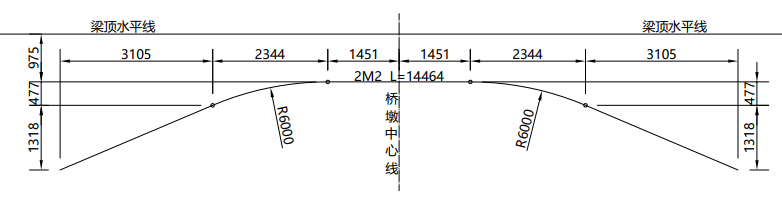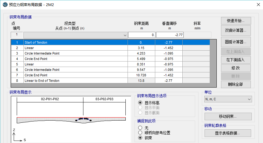 這里以某連續(xù)梁橋的一根預(yù)應(yīng)力鋼束2M2為例,說明該預(yù)應(yīng)力鋼束的輸入方法;該鋼束布置形狀如下圖所示: