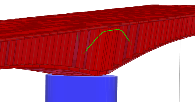 第三,預(yù)應(yīng)力鋼束的水平布局的定義方式于鋼束豎直布局的定義方式類似,這里不再重復(fù)介紹。定義完成后預(yù)應(yīng)力鋼束顯示如下: