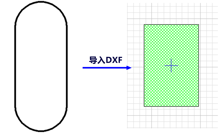 鐵路橋梁中橋墩常采用圓端形截面,對(duì)于此類截面,在SAP2000及CSiBridge中一般采用導(dǎo)入DXF文件的方式來(lái)定義。依據(jù)導(dǎo)入實(shí)體截面的原則,將該截面采用閉合多段線繪制于一個(gè)圖層,然后導(dǎo)入,但是導(dǎo)入后截面形式并不是圓端形截面,而是一個(gè)矩形截面。導(dǎo)入后截面如下所示: