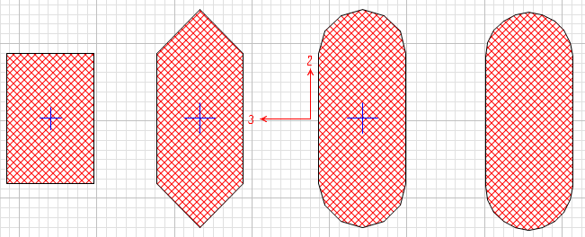 這里以圓端形橋墩截面為例,簡(jiǎn)要說(shuō)明存在圓弧線時(shí)導(dǎo)入實(shí)體截面的注意事項(xiàng)。在CAD中分別繪制四個(gè)相同的橋墩截面,并將其都轉(zhuǎn)化為多段線。不同的是四個(gè)截面的圓弧段是否進(jìn)行了分段。從左至右,依次將四個(gè)截面的圓弧段分別分成了1段、2段、6段、及10段,然后合并成一個(gè)閉合曲線,具體如下所示,將其保存為DXF文件導(dǎo)入。