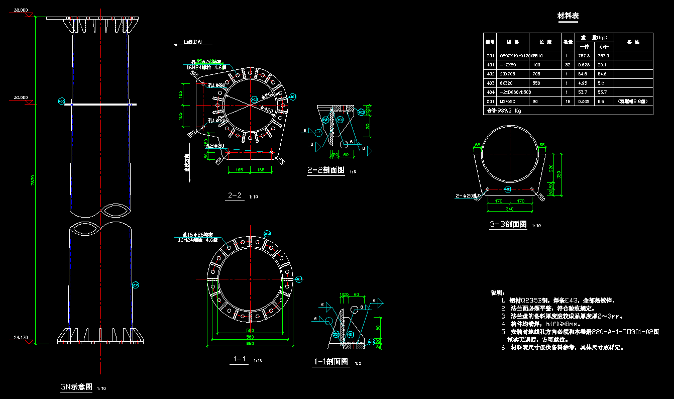 鋼管格構(gòu)柱施工圖: