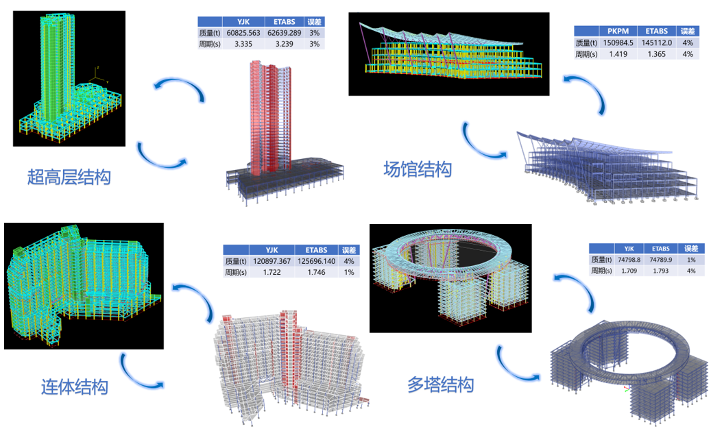 對于多高層結(jié)構(gòu)以及超高層結(jié)構(gòu),一個工程項(xiàng)目常常需要多個軟件互相校核。CiSDC內(nèi)置了模型轉(zhuǎn)換功能,可將YJK、PKPM以及Midas模型轉(zhuǎn)換為ETABS中文版/SAP2000中文版彈性模型或彈塑性模型(含配筋結(jié)果),還可以實(shí)現(xiàn)ETABS中文版模型與SAP2000中文版模型的相互轉(zhuǎn)換。
